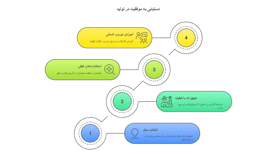 انتخاب مکان مناسب برای احداث کارخانه، از نظر دسترسی به بازار مصرف، تأمین مواد اولیه و هزینه های لجستیکی، نقش تعیین کننده ای در موفقیت دارد. تجهیزات نیز باید از برندهای معتبر و با ظرفیت متناسب با نیاز بازار انتخاب شوند تا خط تولید با حداقل توقف و ضایعات کار کند.